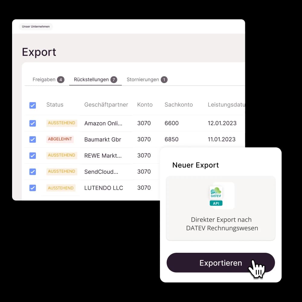 Unsere DATEV-Schnittstelle eignet sich auch ideal für Unternehmen, die ihre Buchhaltung über ein externes Steuerbüro abwickeln.