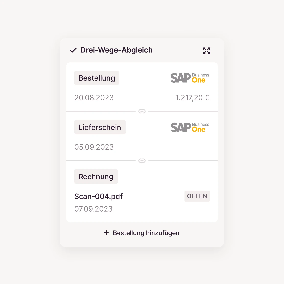 Wir machen deinen Beschaffungsprozess noch übersichtlicher und sorgen für eine transparente Rechnungsfreigabe. Dafür importieren wir deine Bestelldaten und Lieferscheine aus SAP Business One, strukturieren sie in Candis neu und vergleichen sie automatisch mit deinen Rechnungen.
