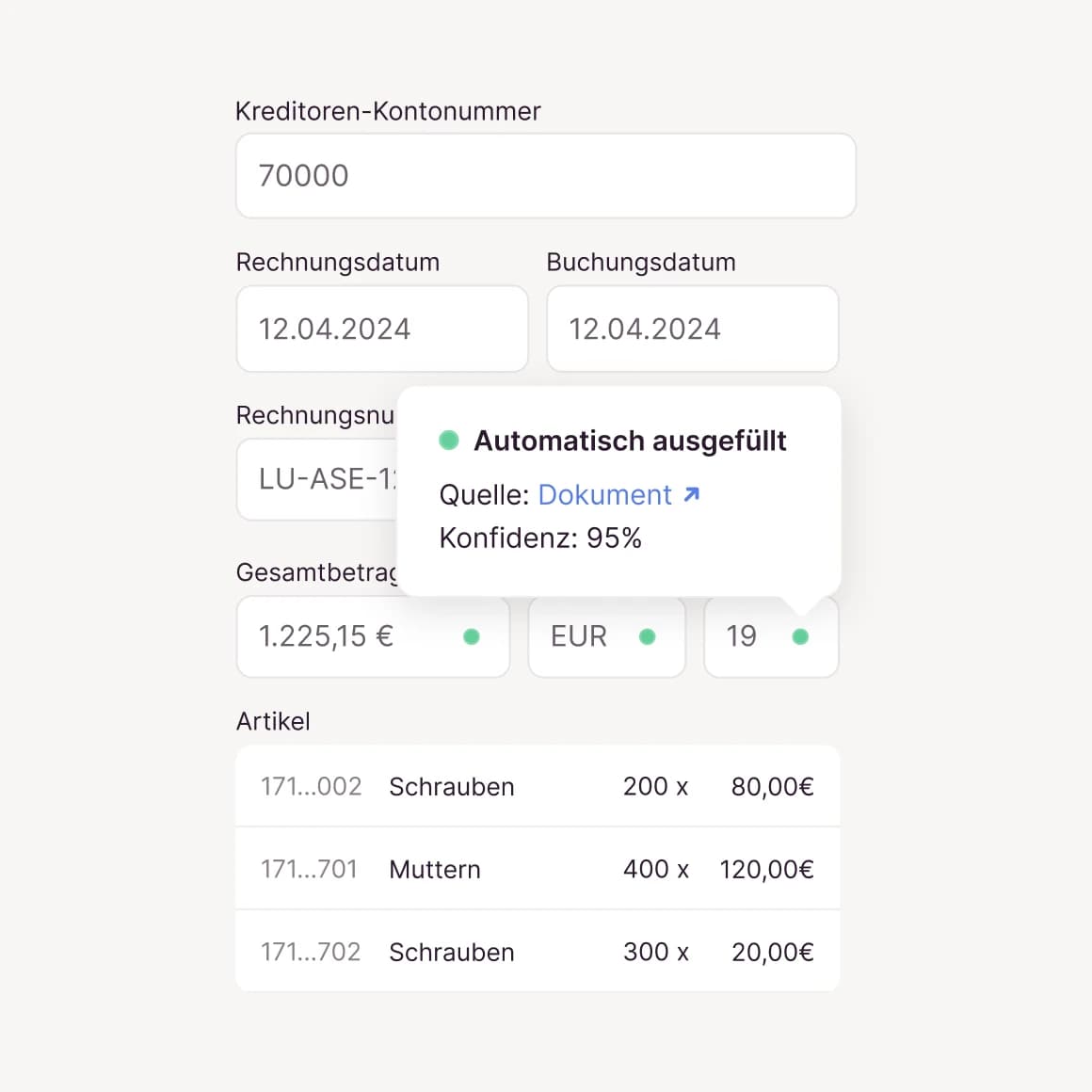 Während dein ERP die Buchung abbildet, sorgt Candis dafür, dass alle Finanzdokumente sicher archiviert, schnell auffindbar und sinnvoll verknüpft sind. Ganz ohne neue ERP-Lizenzen.