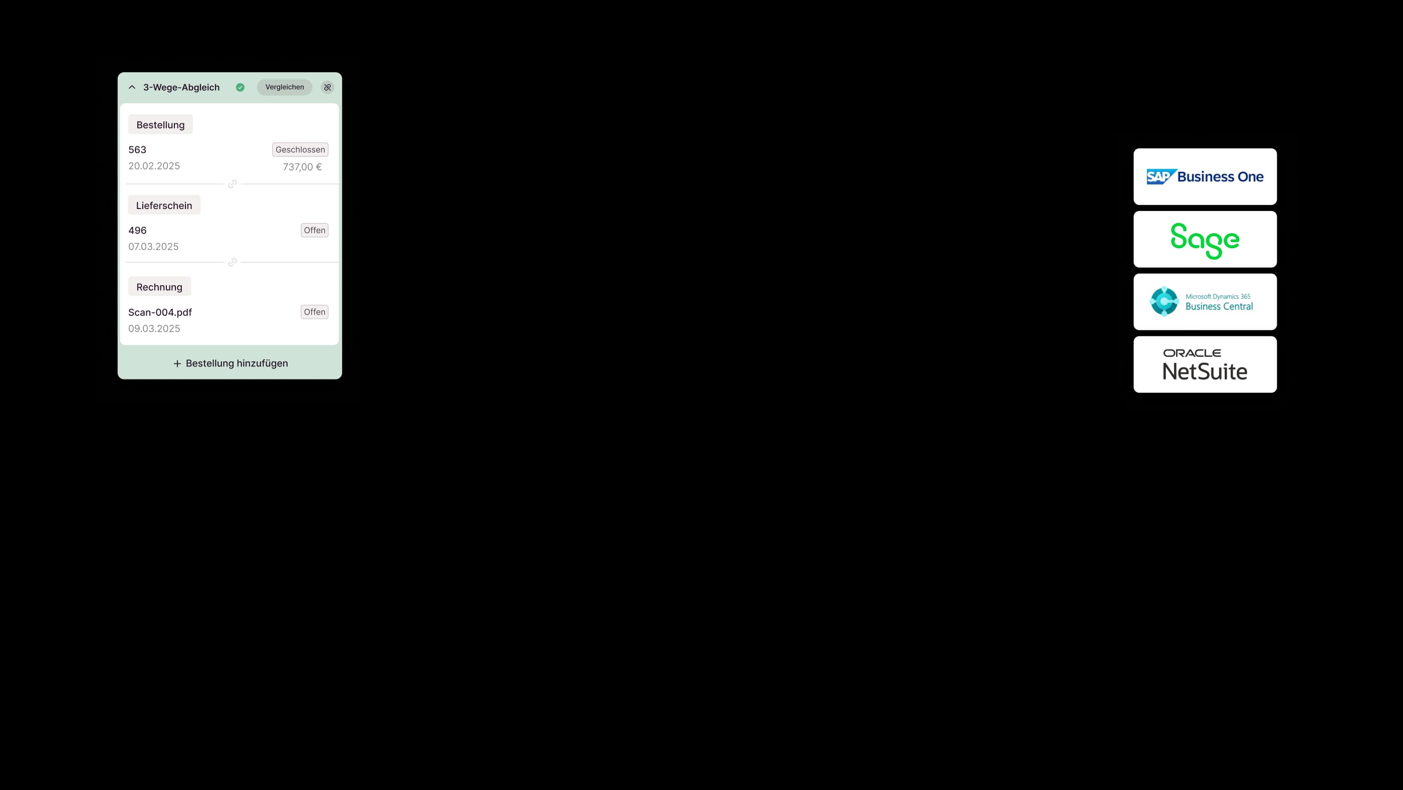 Direkte Schnittstellen zu Microsoft Business Central, Sage 100 oder SAP Business One